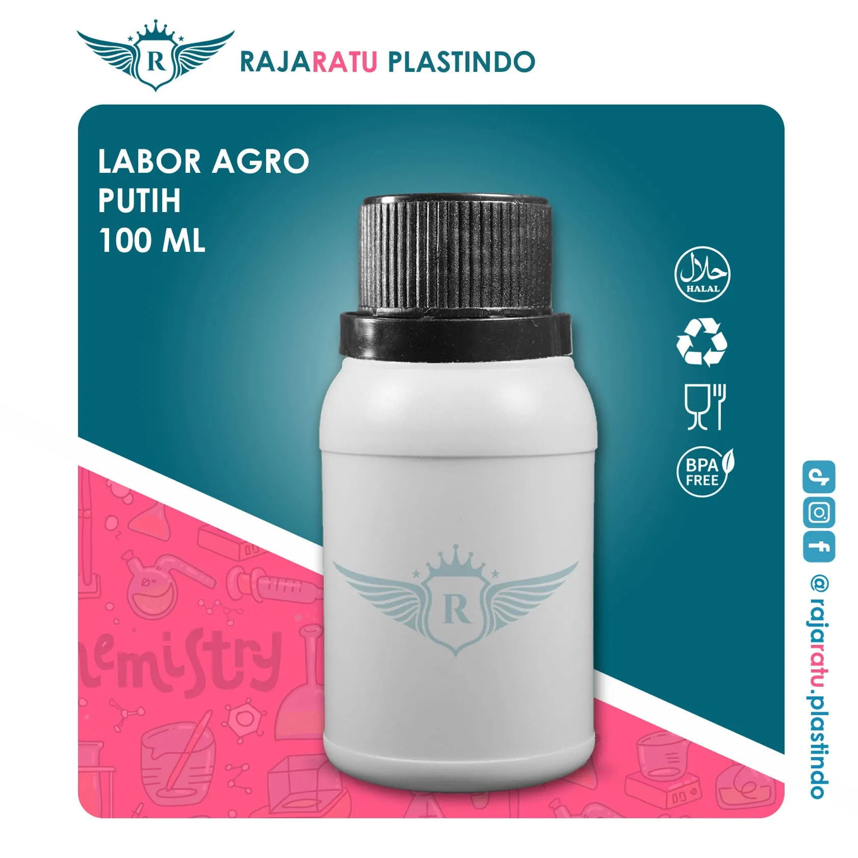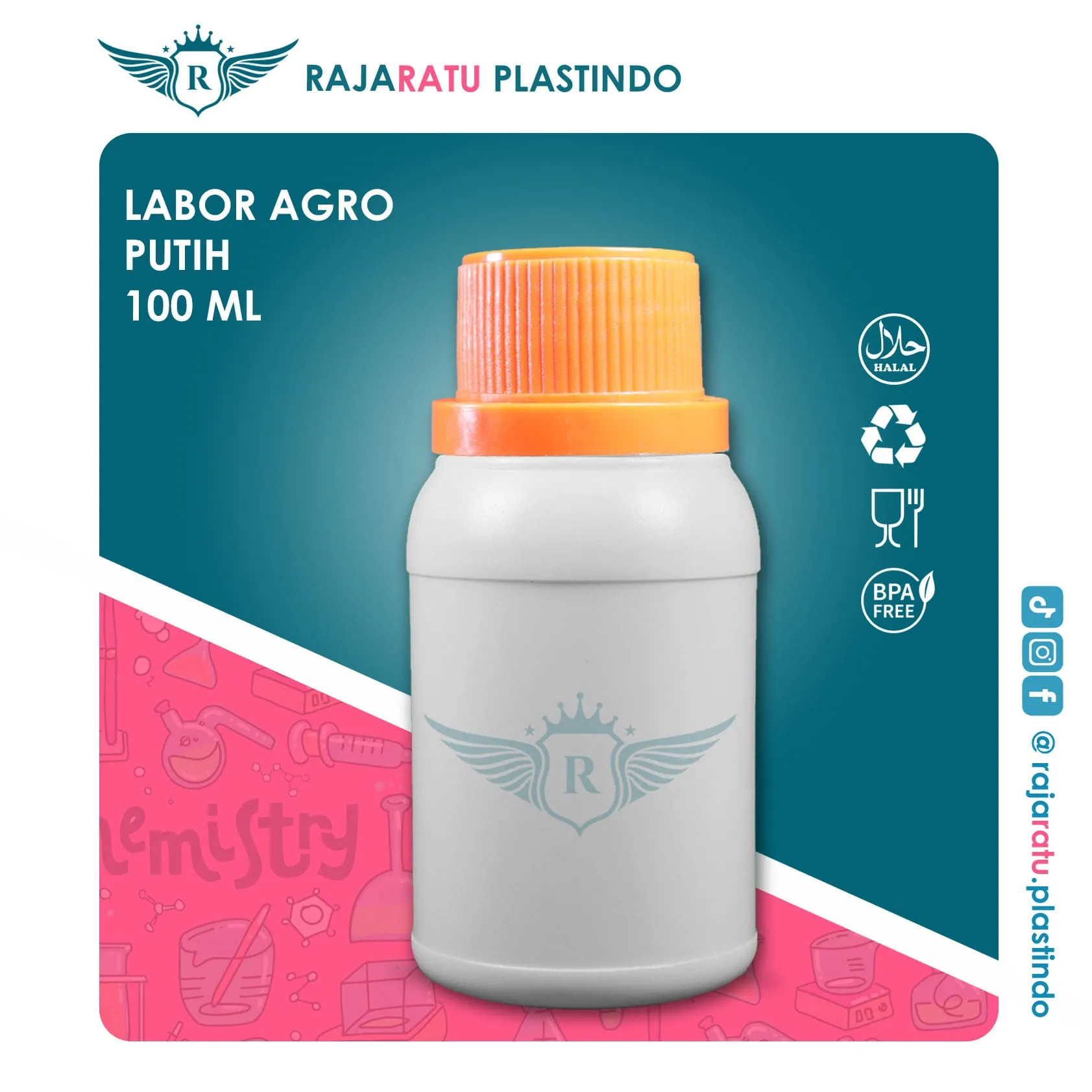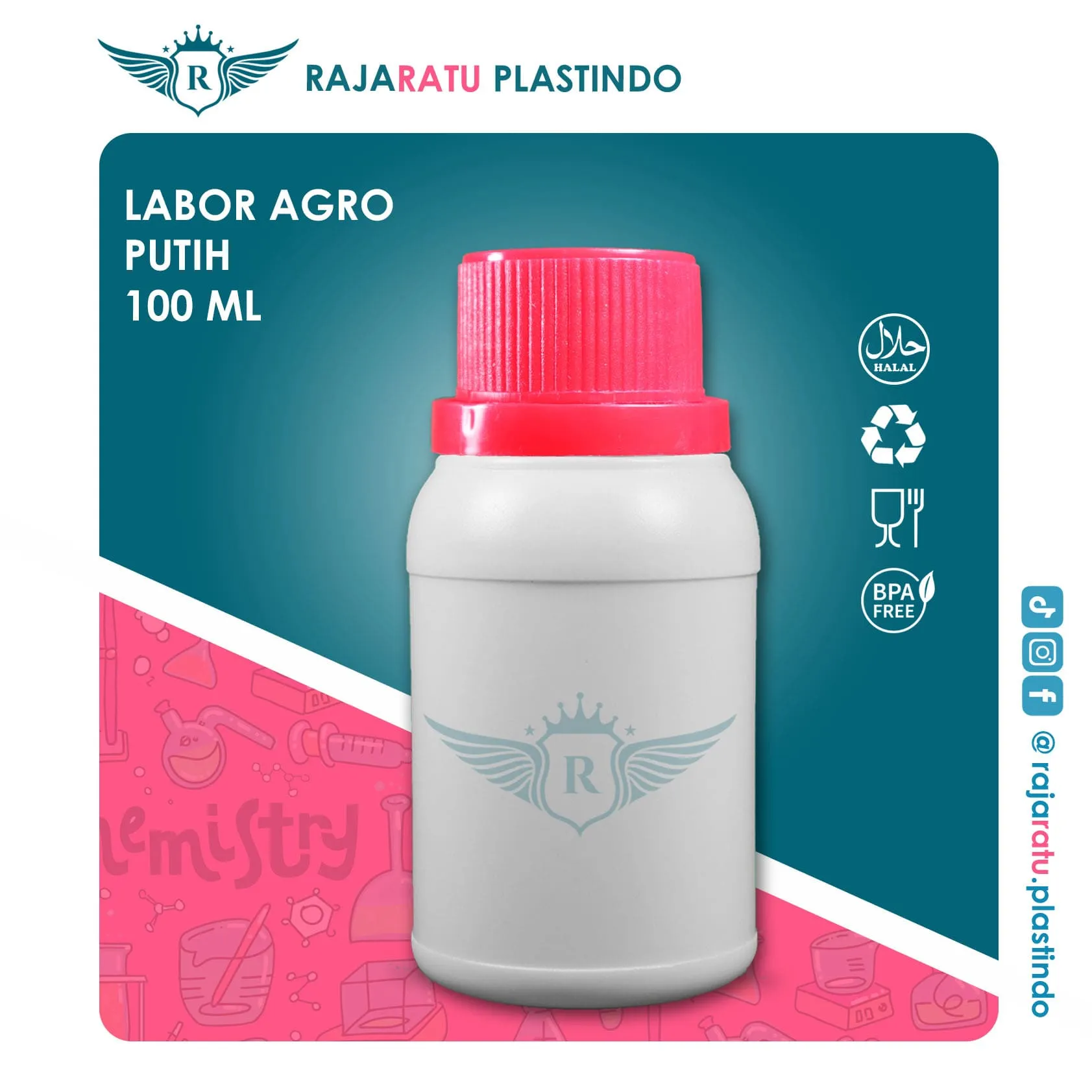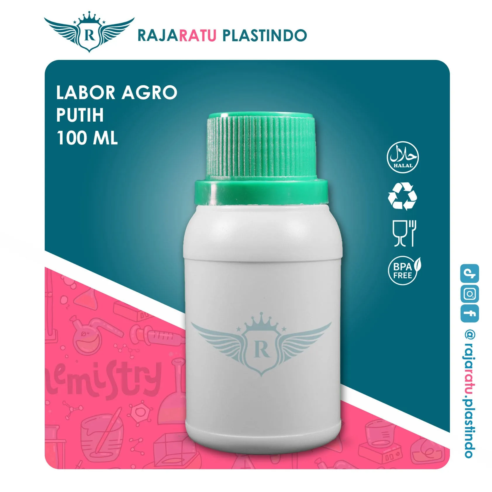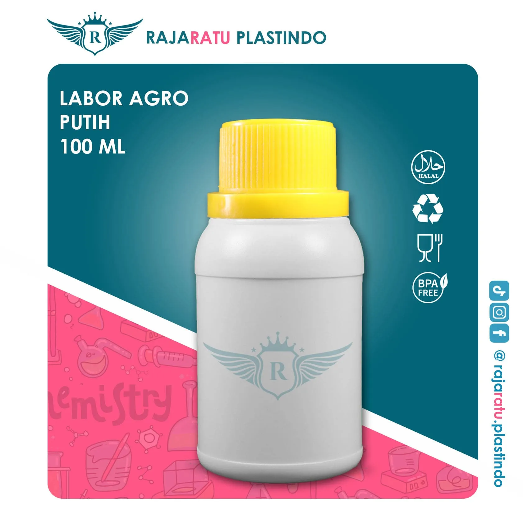Botol kemasan plastik berkapasitas 100 ml, ideal untuk keperluan industri seperti pupuk, jamu, bahan kimia, atau produk bertekanan gas. Terbuat dari HDPE (High Density Poly Ethylene) berkualitas — aman, kokoh, dan tahan bahan kimia.