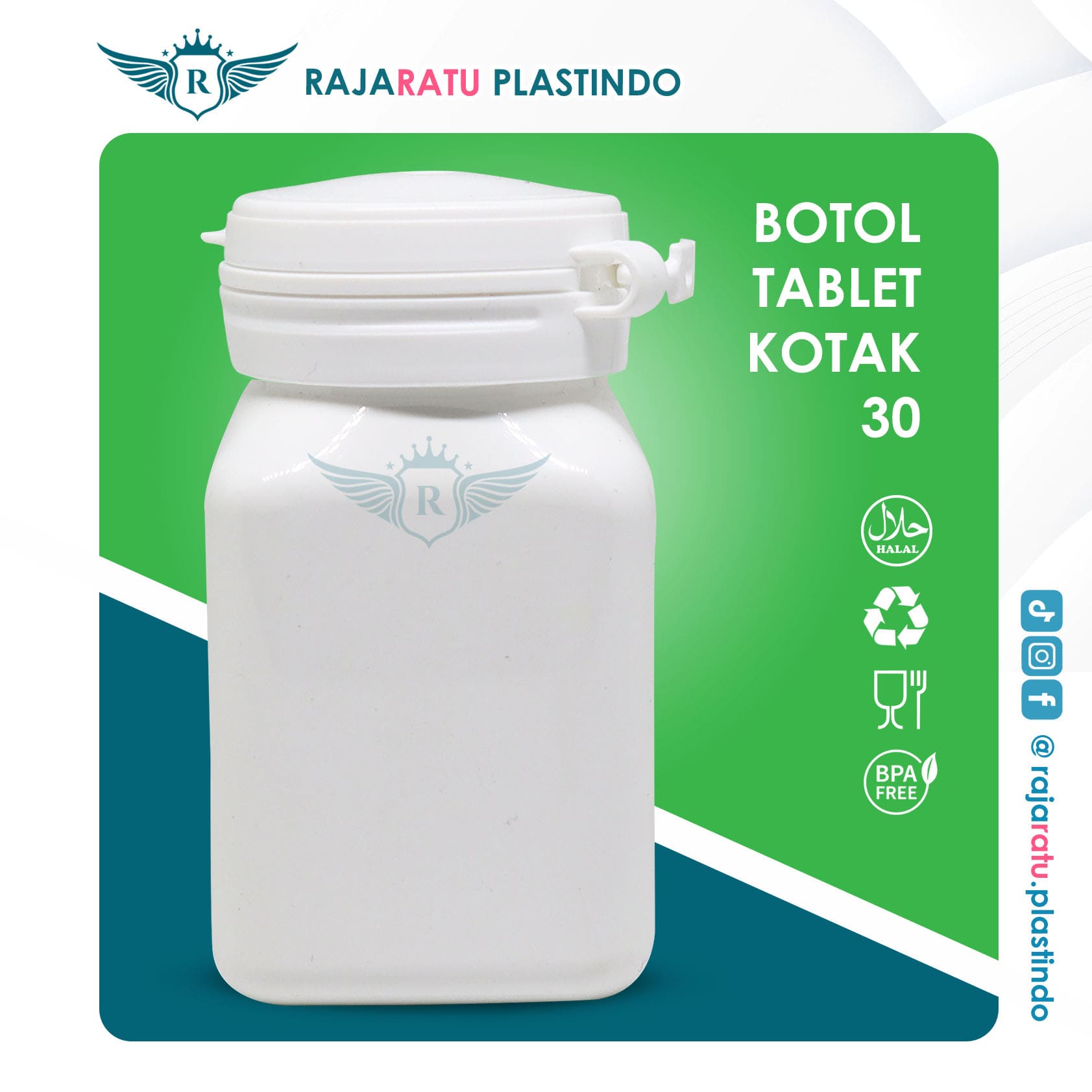 Botol Tablet Kotak 30 Putih + Setcap Lipring